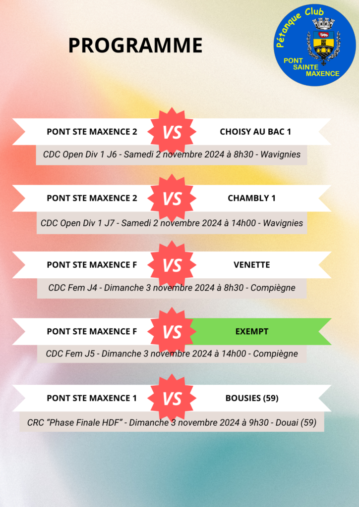 Semaine 44 Auteur/autrice de la publication :Anto Publication publiée :31/10/2024 Post category:CDC / CRC / Programme Commentaires de la publication :0 commentaire Vous devriez également aimer Semaine 42 16/10/2024 Convocation 29/10/2024 Notre sort est scellé 24/12/2024 Laisser un commentaire Annuler la réponseVous devez être connecté pour publier un commentaire.